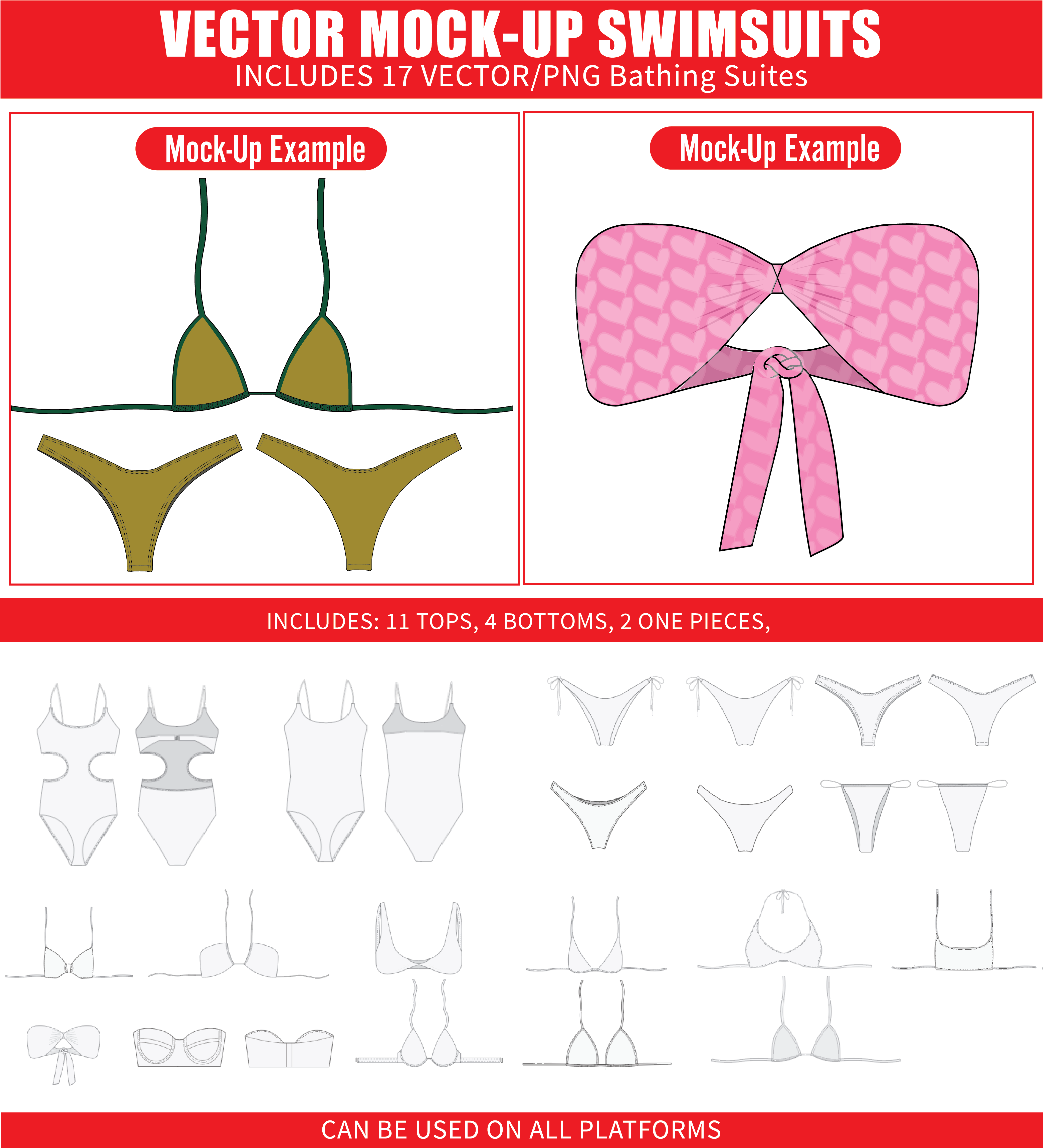Our Swim Suite Mock-Up Pack is perfect for designers looking to create a professional, fully customizable look. With ready-made templates available in Procreate, Adobe, and more, you can create your perfect suit in no time!